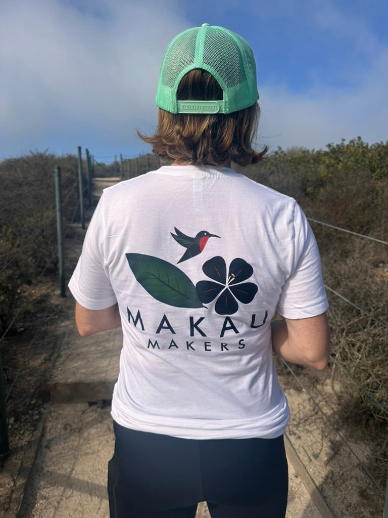 Each shirt features the Makau Makers logo, representing craftsmanship, creativity, and coastal vibes. It’s simple, bold, and made for folks who appreciate the handmade life.